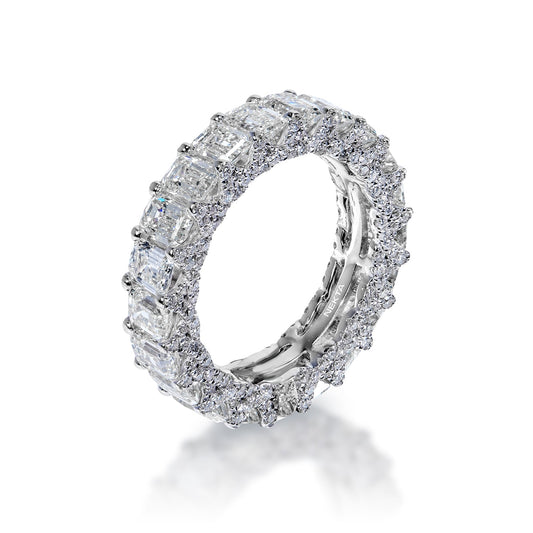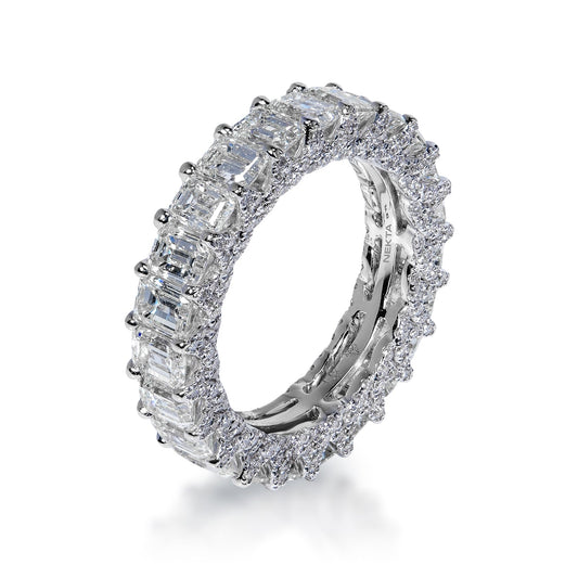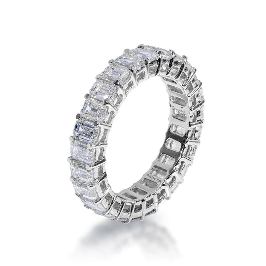 MUZU 5 Carat Emerald-Cut Diamond Eternity Ring in Platinum 30 pointer G Color VS1 Clarity Shared Prong Band By Mike Nekta NYC