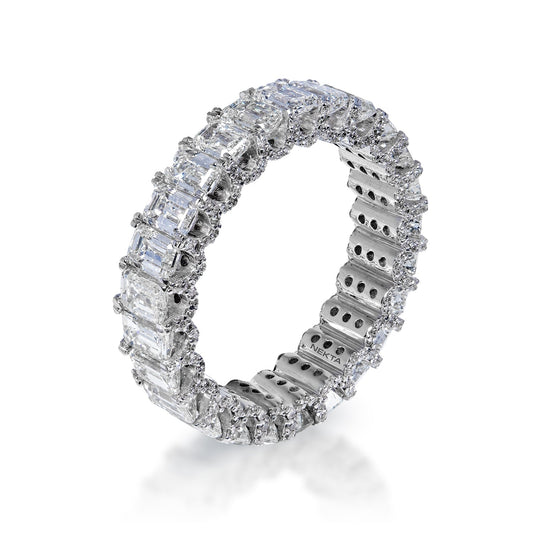 MUZU 5 Carat Emerald-Cut Diamond Eternity Ring White Gold 30 pointer G Color VS1 Clarity Shared Prong Band By Mike Nekta NYC