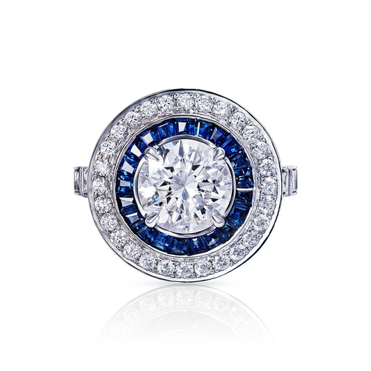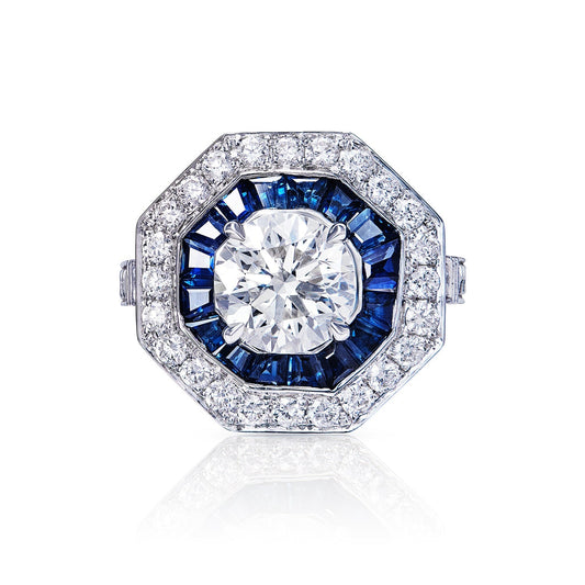 Ariella Vintage Style Octagon, halo 4 Carat Round Brilliant Earth Mined Diamond Engagement Ring in 18kt White Gold.