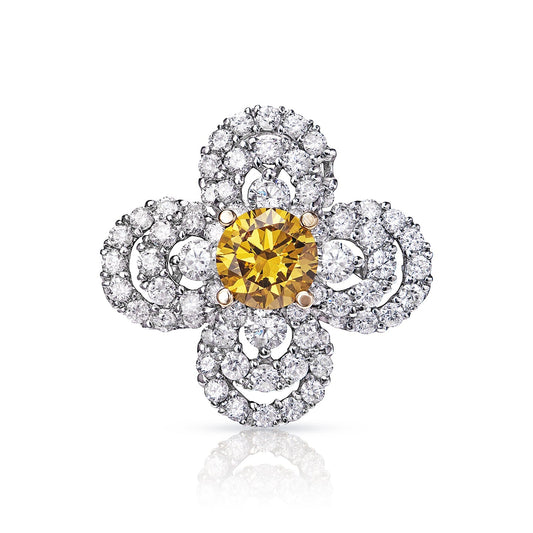 Aurelia 4 Carat Yellow Round Brilliant Diamond Engagement Ring in 18k White Gold