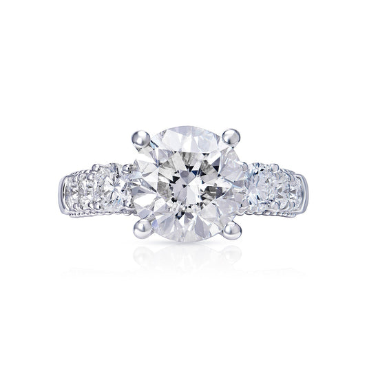 9 Carat Round Cut Lab Grown Diamond Engagement Ring Sidestone. IGI Certified