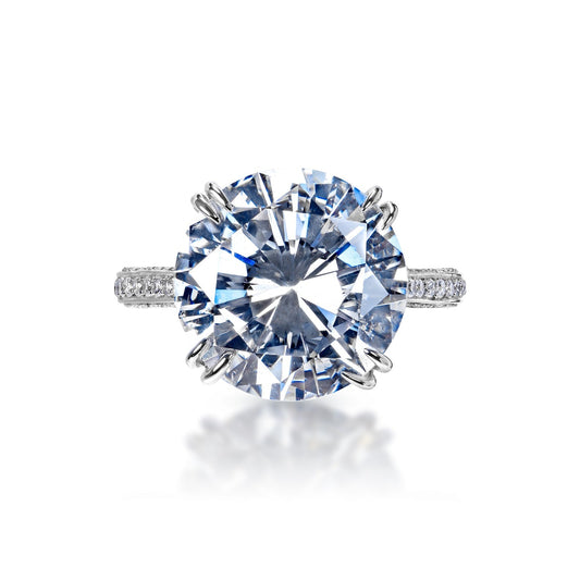 8 Carat Round Cut Lab Grown Diamond Engagement Ring. IGI Certified