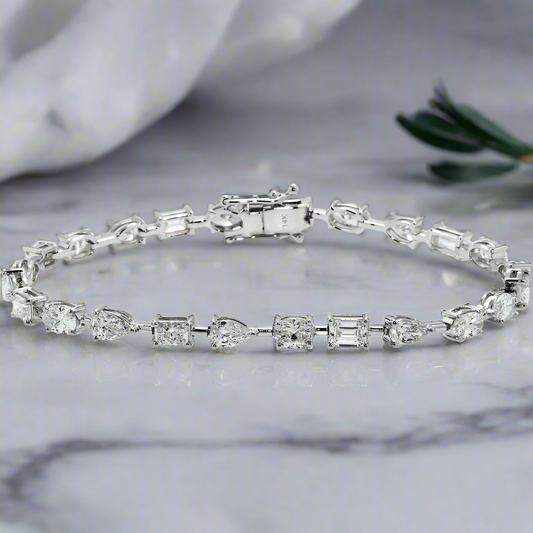 Luseele 3 Carat Marquise Cut Lab Grown Diamond Bracelet in 14k White Gold