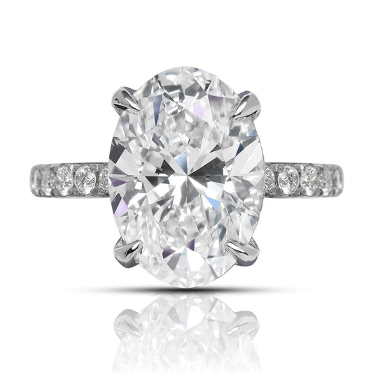 EMMA 5 CARAT OVAL CUT E COLOR VVS1 CLARITY DIAMOND ENGAGEMENT RING PLATINUM GIA CERTIFIED 4CT E VVS1 BY MIKE NEKTA