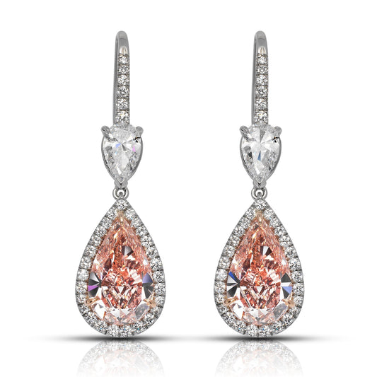 TIARA Pear Shape Fancy Pink Diamond Earrings GIA Certified