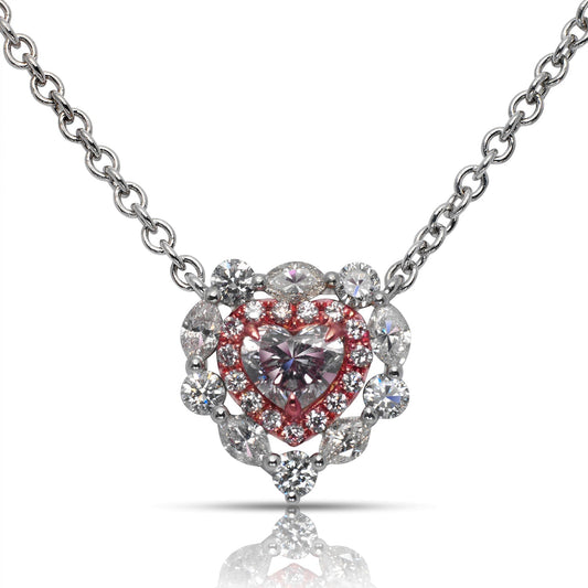 COUR HALO HEART SHAPE FANCY PINK DIAMOND PENDANT 18K ROSE WHITE GOLD 18 INCH CHAIN GIA CERTIFIED 0.31 CT BY MIKE NEKTA