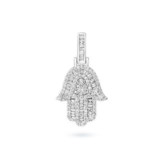 Raquel 1 Carat Combine Mixed Shape Diamond HAMSA Pendant Necklace in 14 Karat White and Yellow Gold