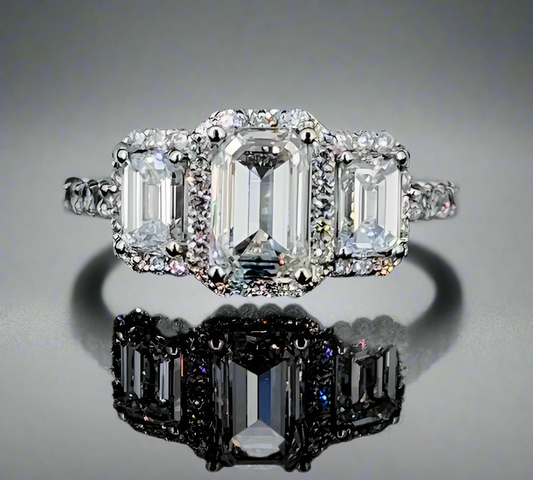 Lyudmila 4 Carat Faceted Emerald Cut Lab Grown Diamond Engagement Ring in 14k White Gold