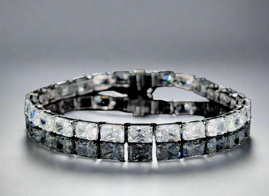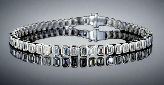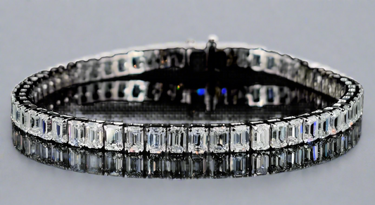 Lanasia 12 Carats Emerald Cut Lab Grown Diamond Eternity Ring in 14k Yellow Gold