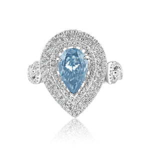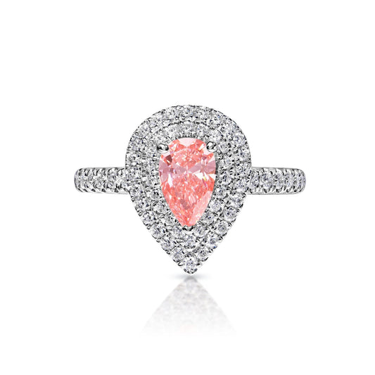 Hallie 1 Carat Fancy Vivid Pink SI1 Pear Shape Diamond Engagement Ring in 18k White Gold