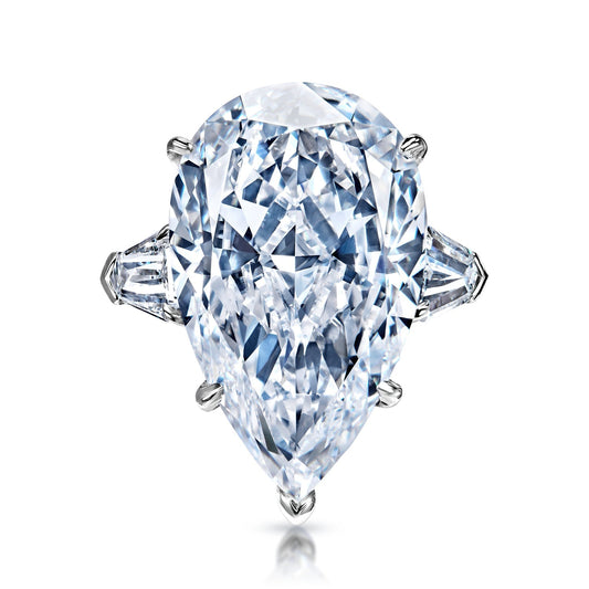 Birdie 11 Carats Pear Shape Diamond Three Stone Engagement Ring in Platinum GIA Certified