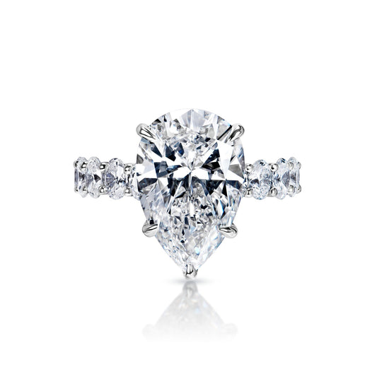 ANTOINETTE 6 CARAT PEAR SHAPE E COLOR VS1 CLARITY DIAMOND ENGAGEMENT RING BAROQUE 14K WHITE GOLD GIA CERTIFIED 4CT E VS1 BY MIKE NEKTA