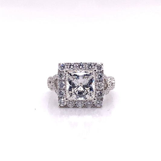 Barbara 8 Carat Princess Cut Halo Diamond Engagement Ring in 18k White Gold