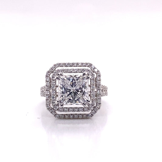 LEEZA 4 Carat Princess Cut Lab Grown Diamond Engagement Ring Double Halo IGI Certified