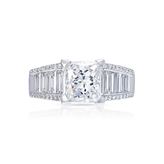 Lareina 7 Carat Faceted Princess Cut Lab Grown Diamond Engagement Ring in 14k White Gold