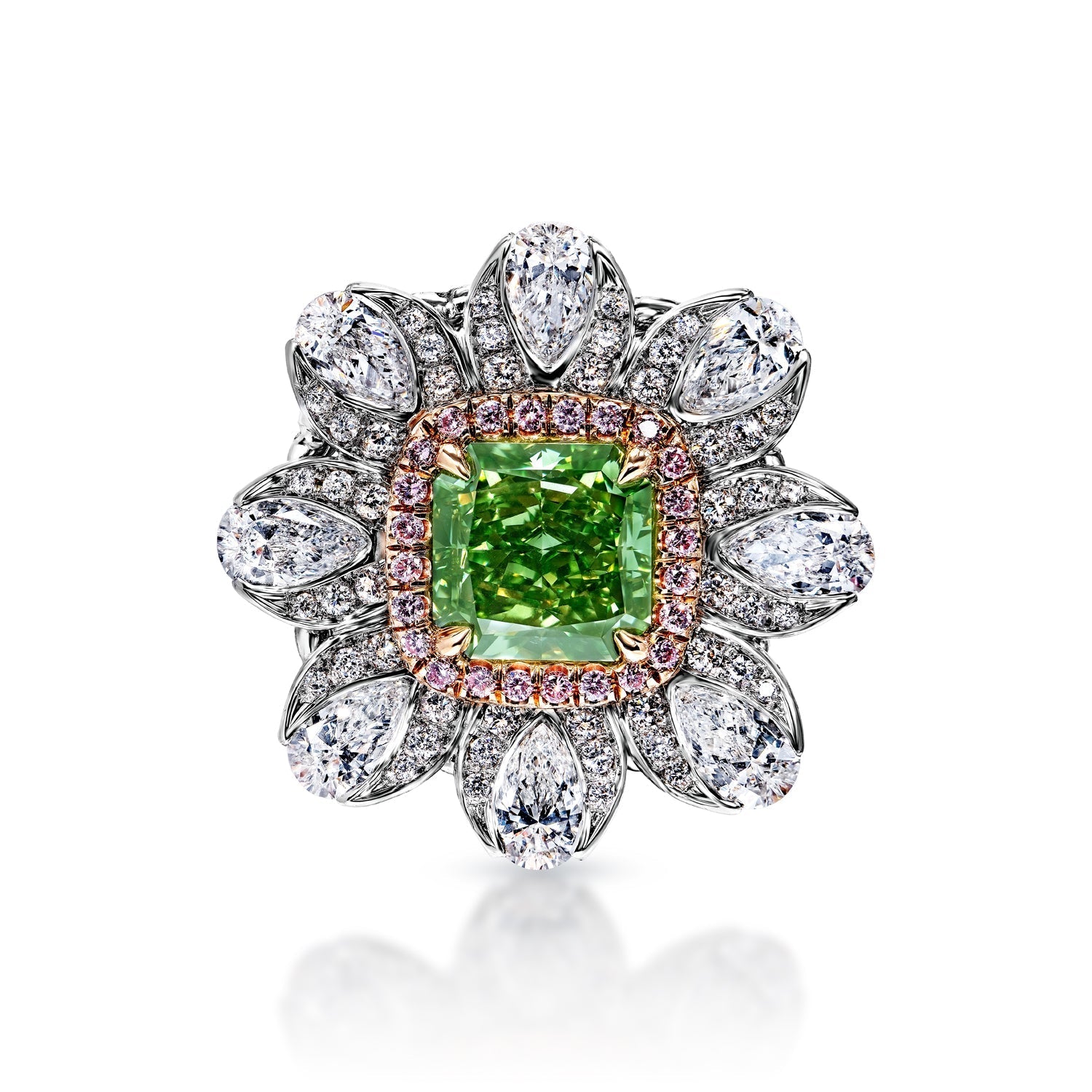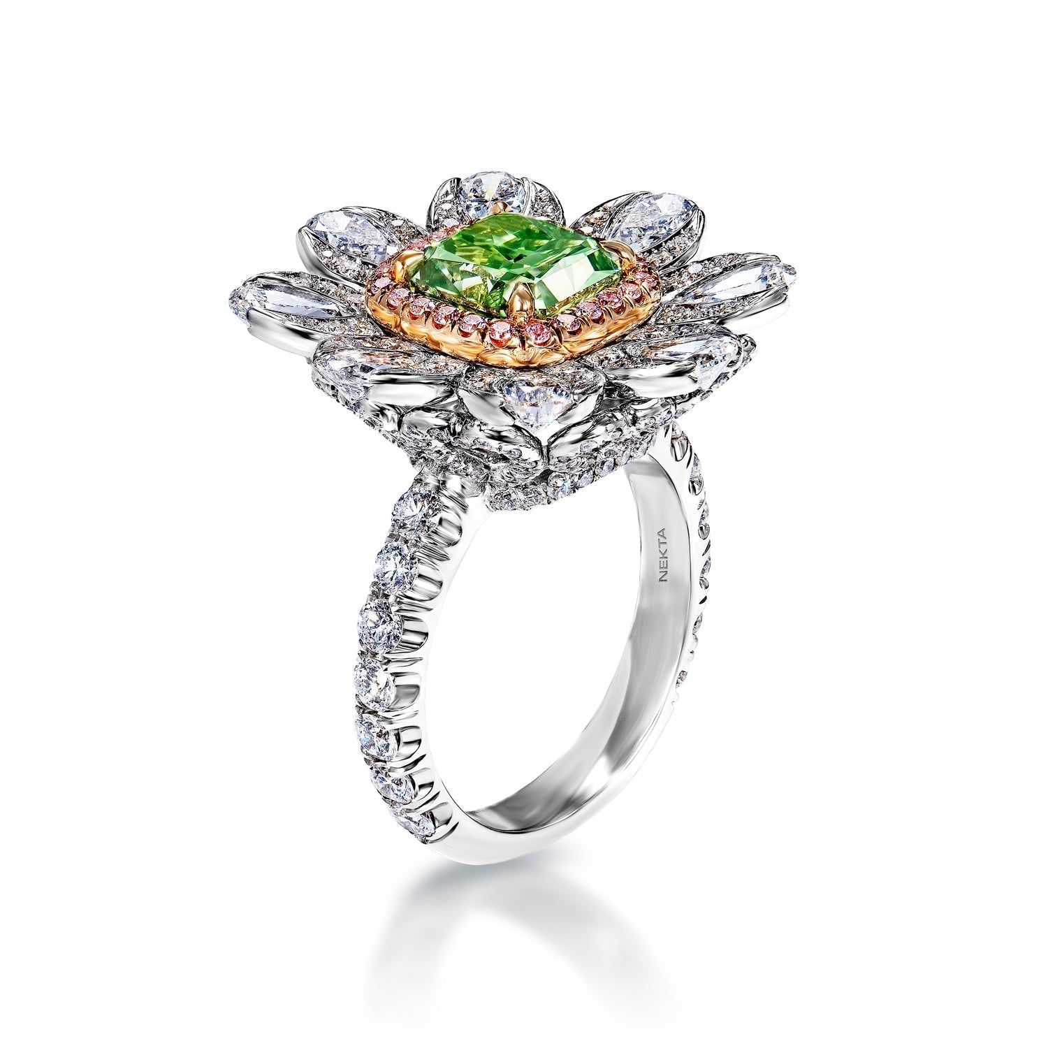 FLOR 6 CARAT RADIANT CUT VVS2 CLARITY FANCY GREEN DIAMOND ENGAGEMENT RING PLATINUM GIA CERTIFIED 2 CT FVG VVS2 BY MIKE NEKTA