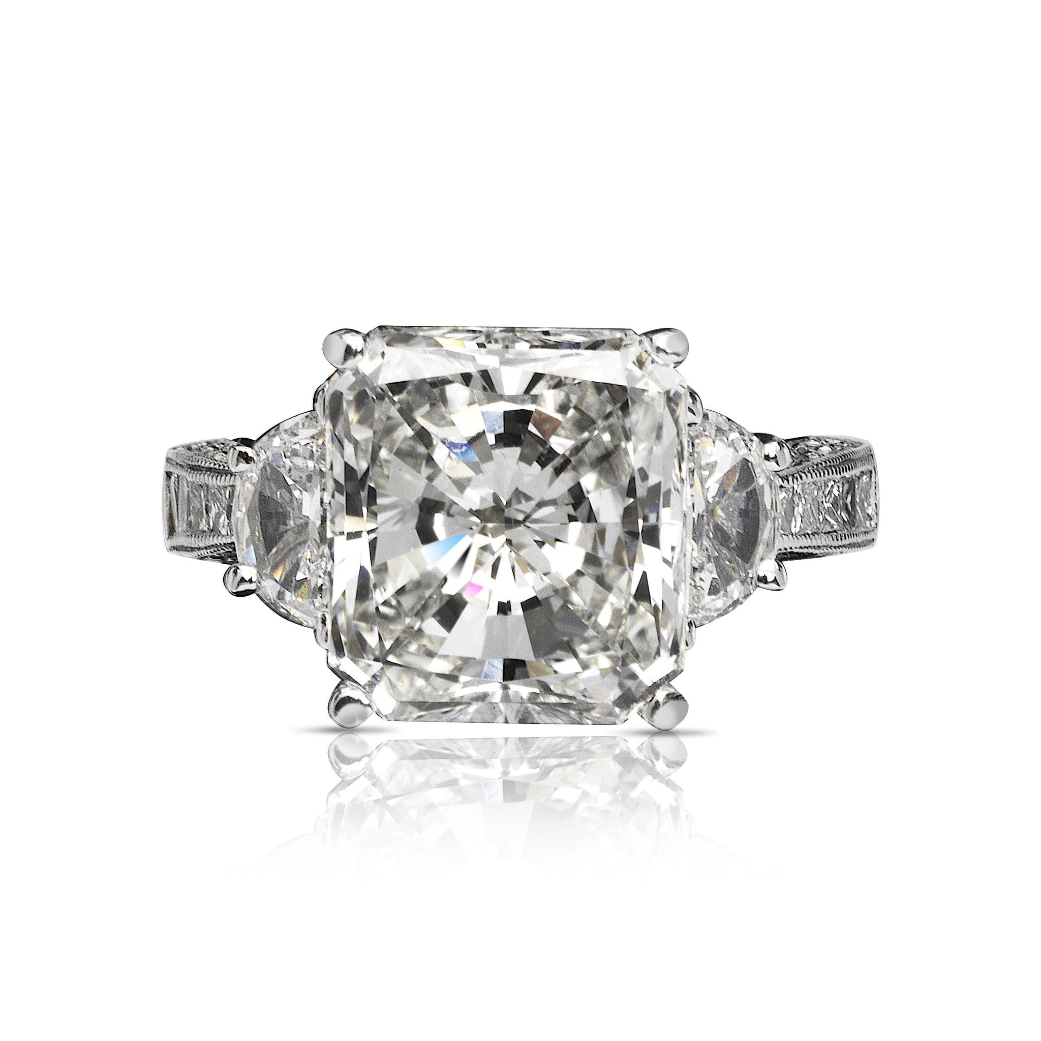 ISLA 12 CARAT RADIANT CUT J COLOR SI1 CLARITY DIAMOND ENGAGEMENT RING PLATINUM GIA CERTIFIED 11 CT J SI1 BY MIKE NEKTA