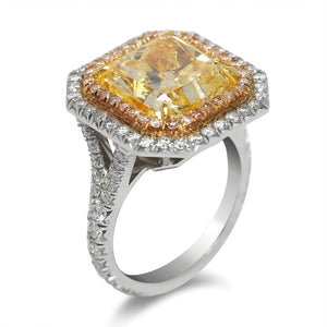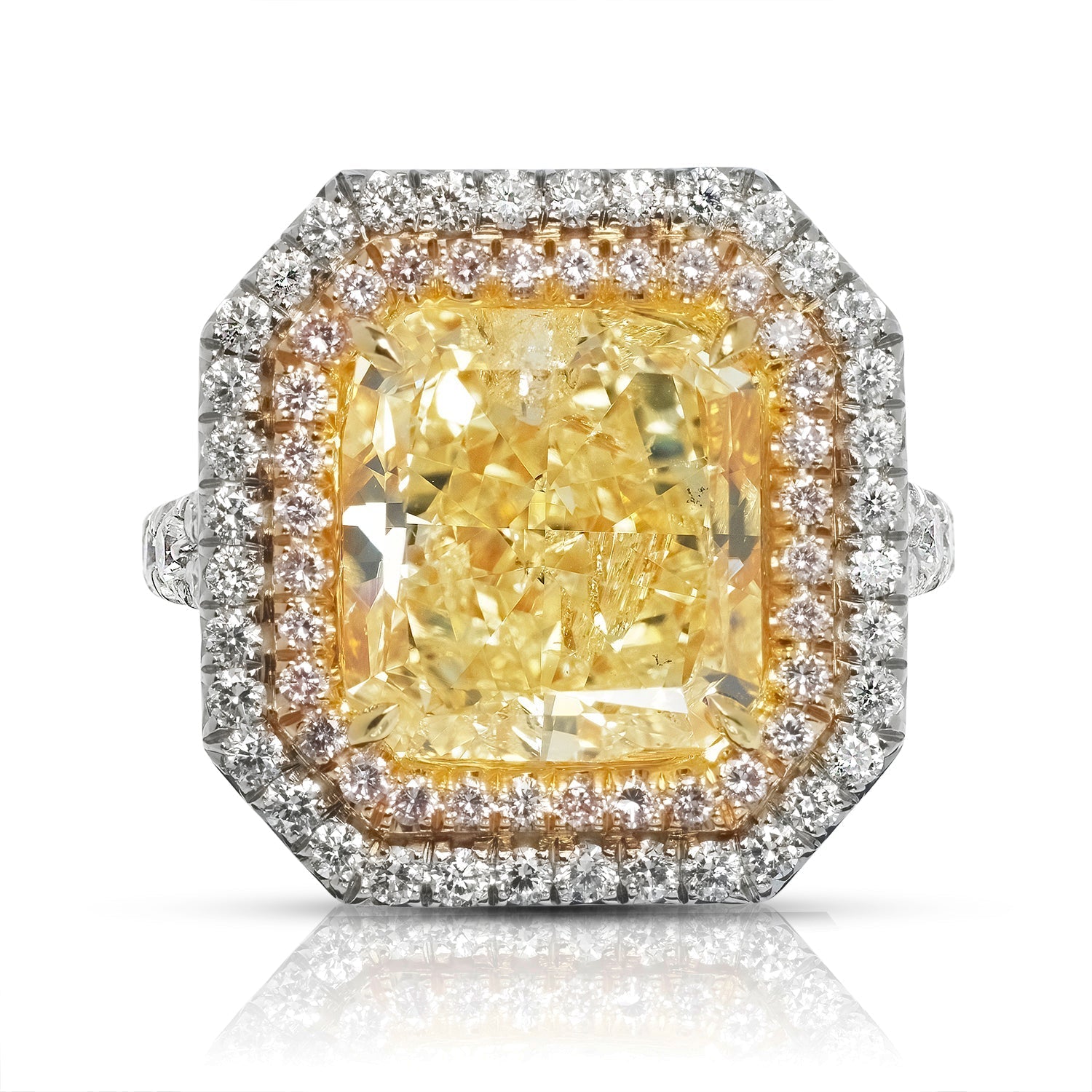 IVY 9 CARAT RADIANT CUT FANCY YELLOW DIAMOND ENGAGEMENT RING PLATINUM & 18K GOLD GIA CERTIFIED 8 CT FY SI1 BY MIKE NEKTA