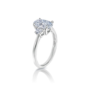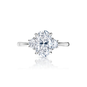 Mckenna 2 Carat G VVS1 Oval Cut Diamond Half Moon Three Stone Engagement Ring in Platinum By Mike Nekta