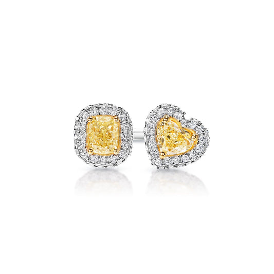 Vanessa 3 Carat Yellow Combine Mix Shape Diamond Engagement Toi Et Moi Ring in 18k White Gold