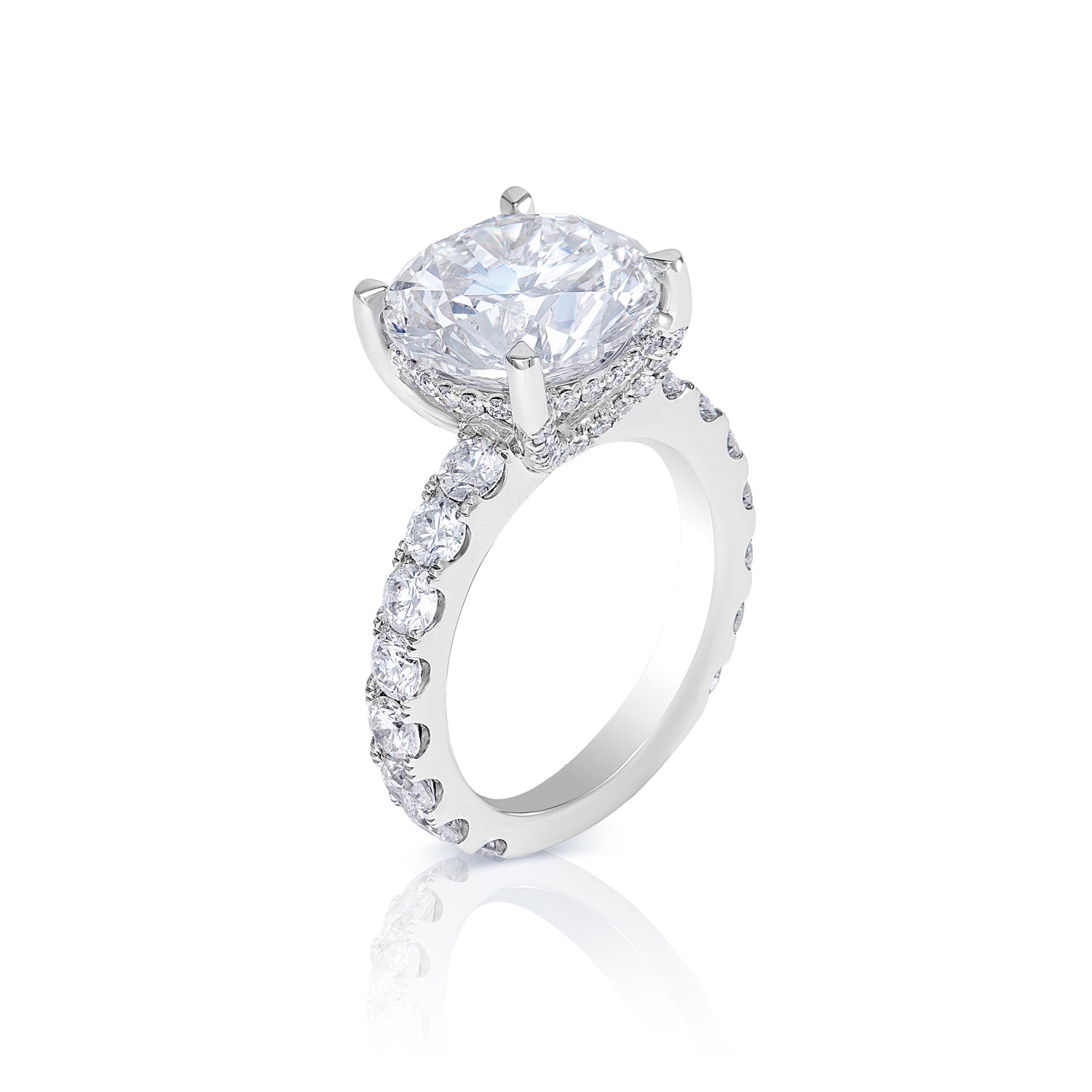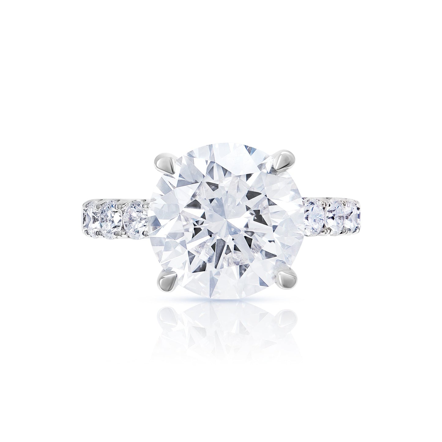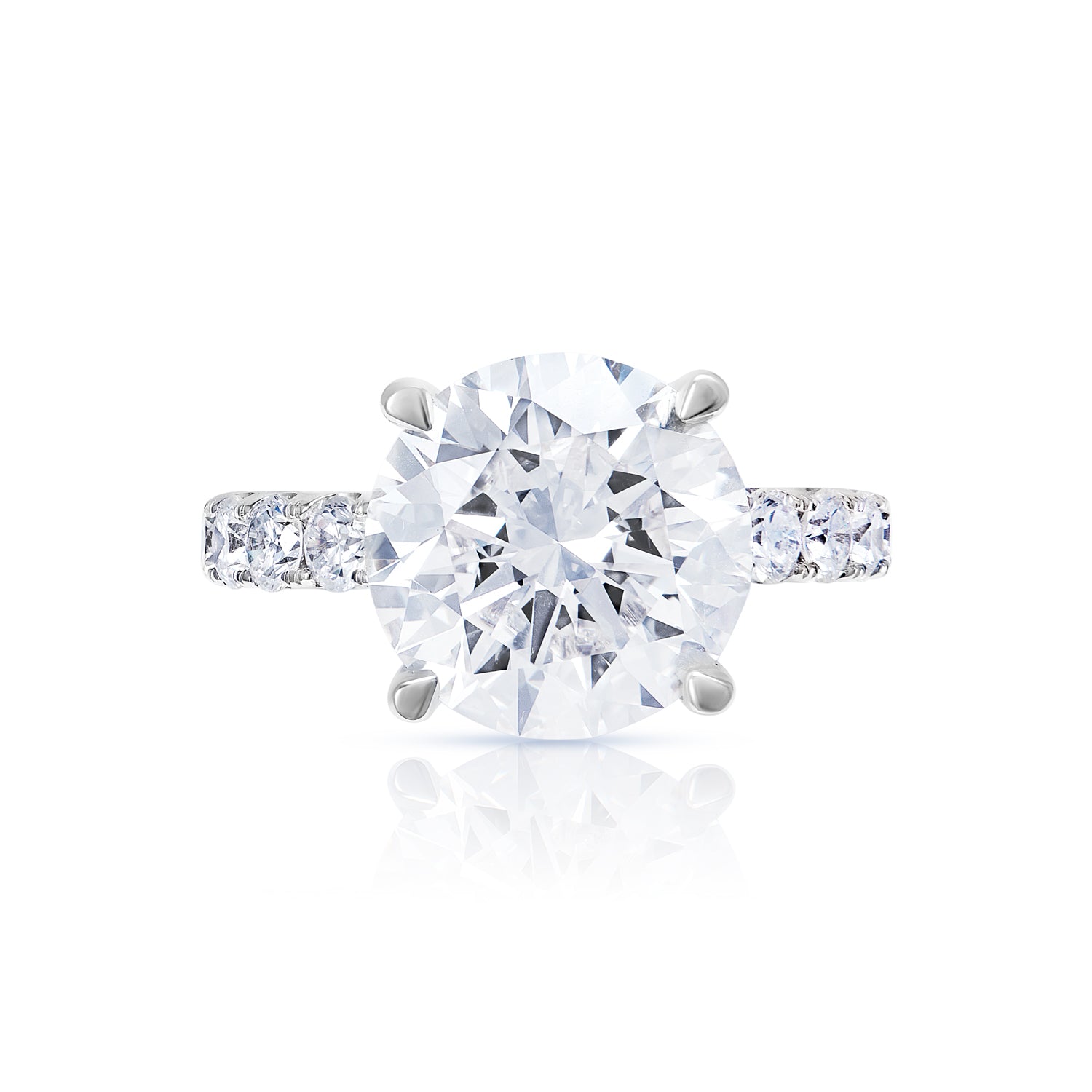 9 Carat Round Cut Lab Grown Diamond Engagement Ring Sidestone. IGI Certified