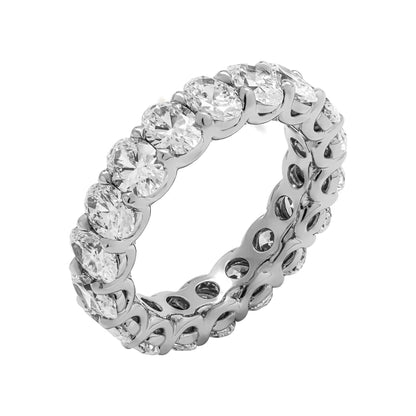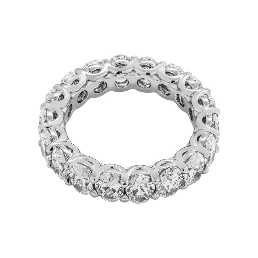 The AILA Wedding Anniversary Eternity Band features 18 Oval Cut 40 pointer diamonds weighing a total of approximately 6.86 carats, U-Shape Shared Prong set in Platinum.