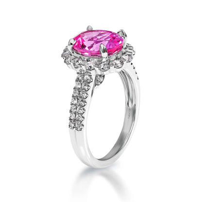 Ariya 5 Carat Oval Cut Pink Sapphire Ring in 14 Karat White Gold
