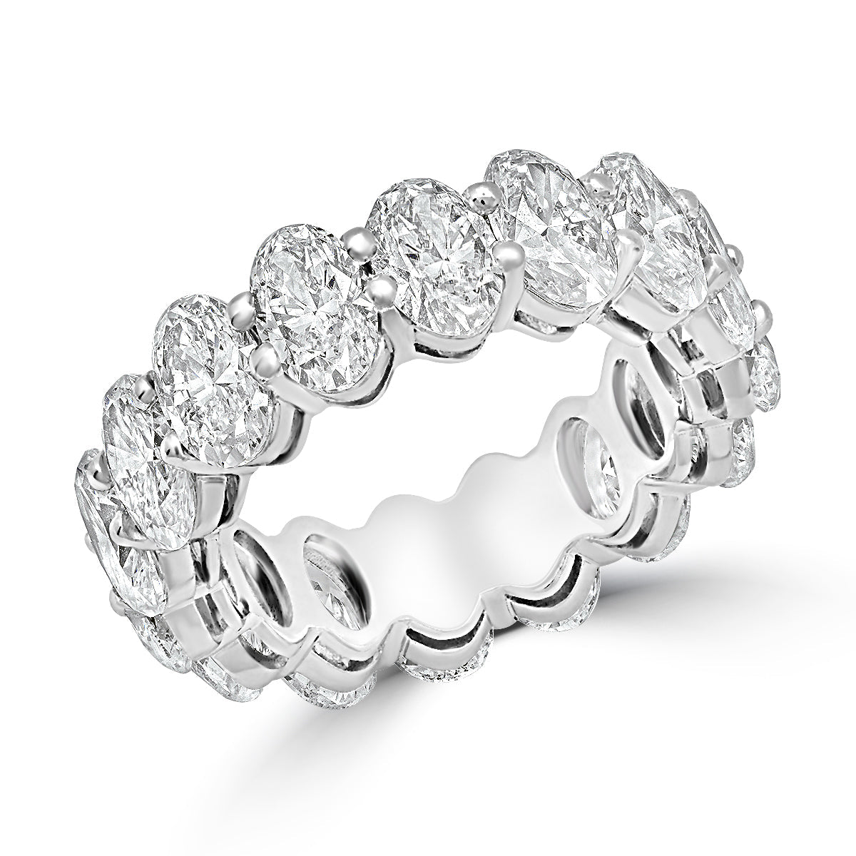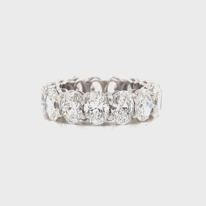 The AZALEA Wedding Anniversary Eternity Band features 13 Oval Cut 50 pointer diamonds weighing a total of approximately 6.70 carats, Shared Prong set in Platinum.
