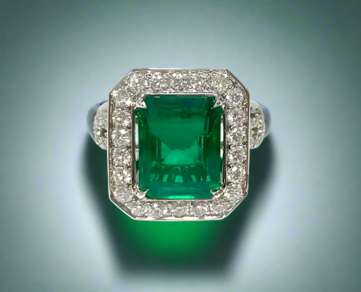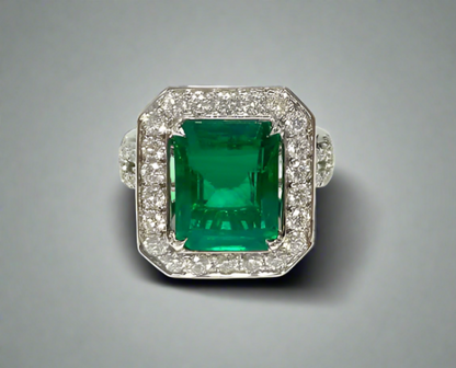Azari 5.25 Carats Emerald Cut Emerald Gemstone Ring in 18K White Gold By Mike Nekta NYC