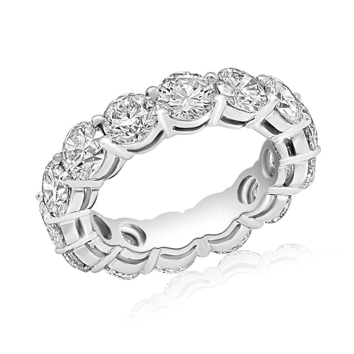 The BELLE Wedding Anniversary Eternity Band features 14 Round Cut 30 pointer diamonds weighing a total of approximately 4.35 carats, Shared Prong set in Platinum.