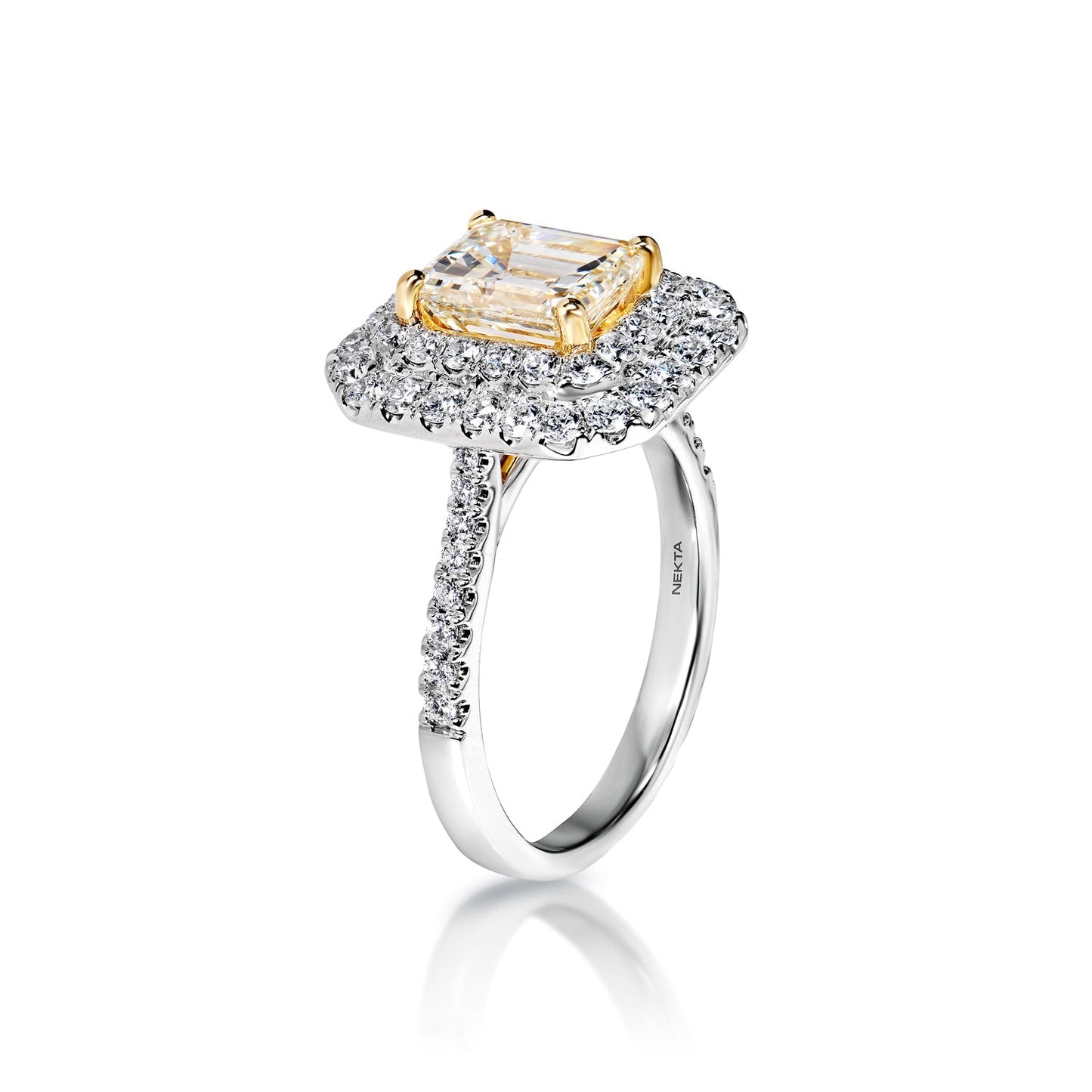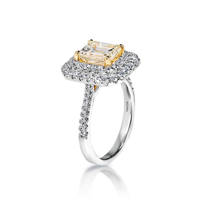 Briella 3 Carat K SI1 Emerald Cut Double Halo Diamond Engagement Ring in 18k White Gold By Mike Nekta.