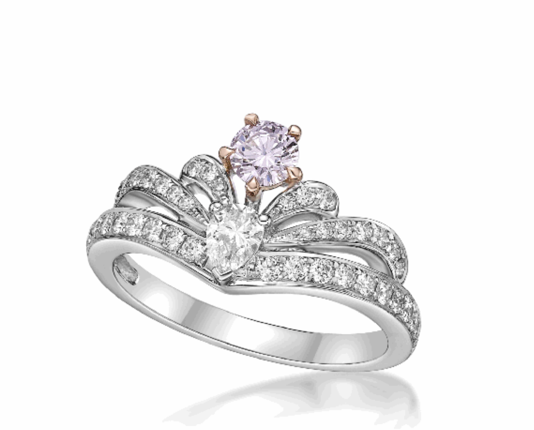 Style: 5 Prong Pink Diamond. Pear Shaped Set 3 Prong. Tiara Design Ring