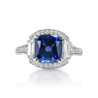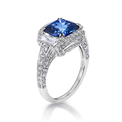 Daphne 4 Carat Vintage Inspired with Step Cut Blue Sapphire Ring in 18K White Gold