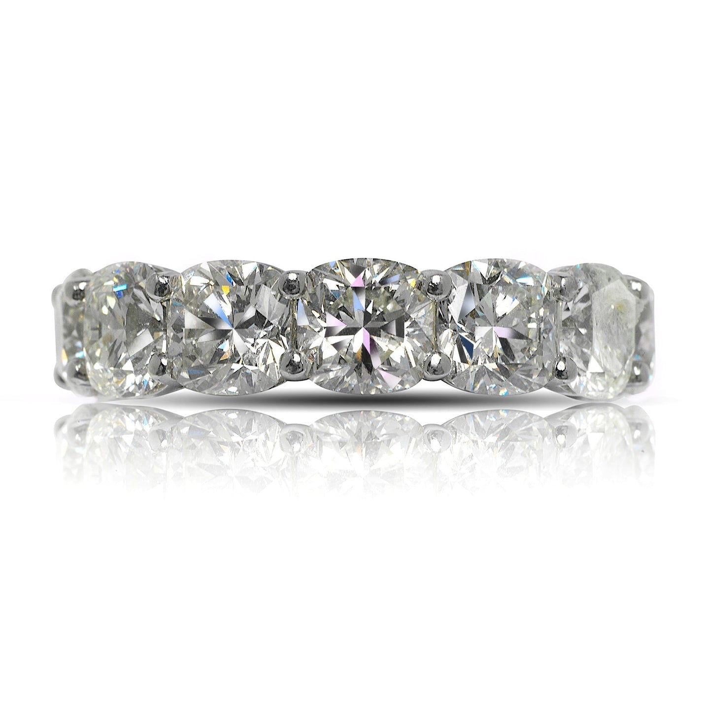 The ELV wedding eternity band features 13 cushion cut 70 pointer diamonds weighing a total of approximately 9.5 carats, U-Shape Shared set in Platinum.