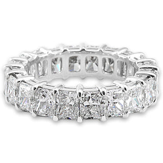 The EMMY Wedding Anniversary Eternity Band features 18 Radiant Cut 20 pointer diamonds weighing a total of approximately 3.70 carats, Shared Prong set in Platinum.