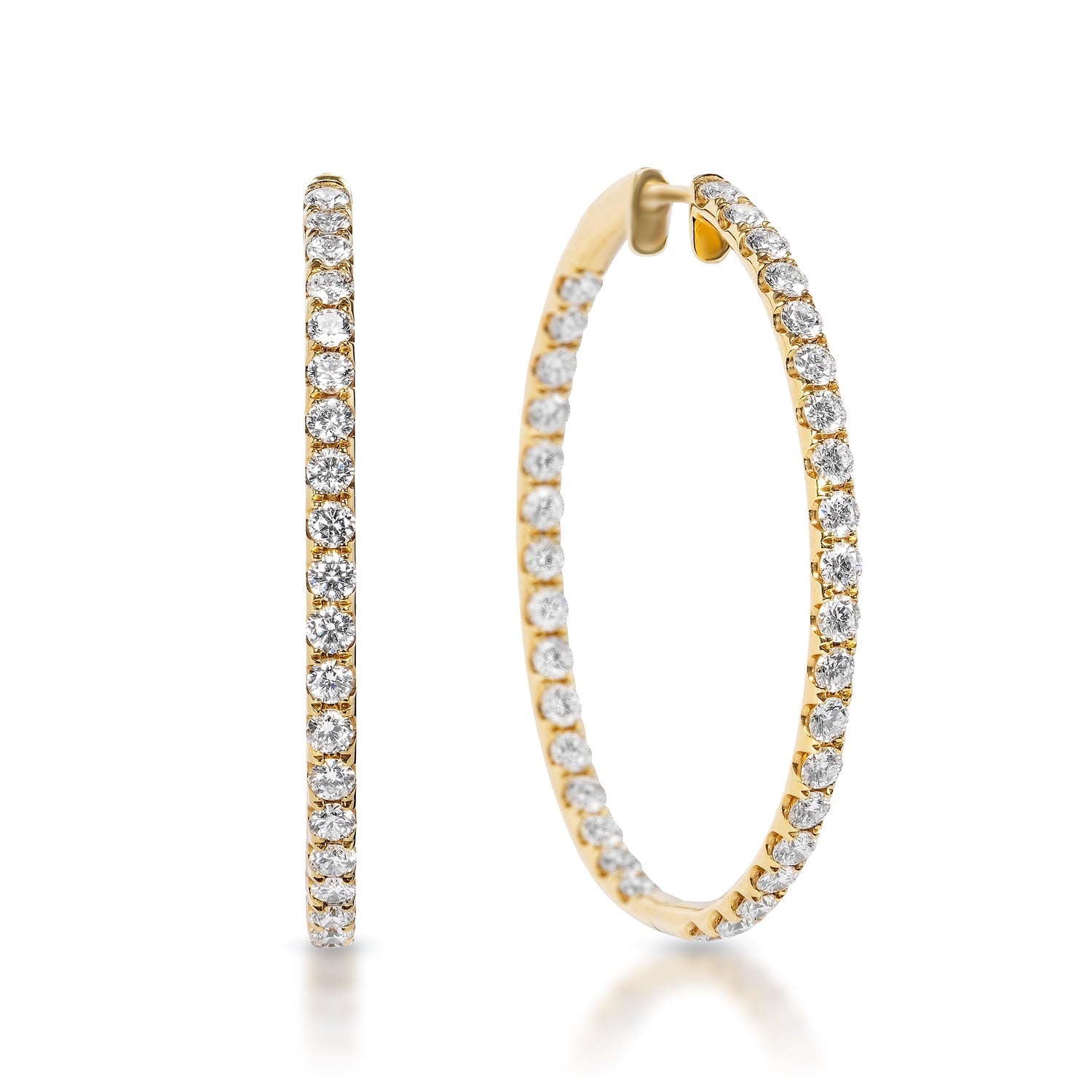 Gabriella 4 Carat Round Brilliant Diamond Hoop Earrings in 14k Yellow Gold