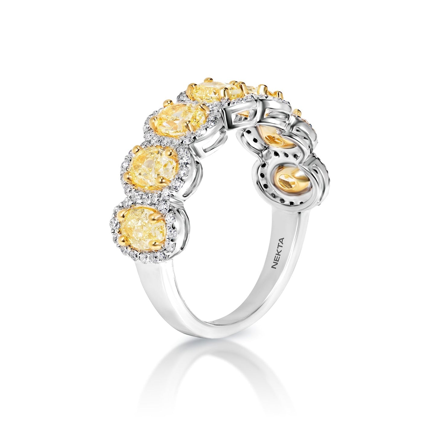 Gracelynn 3 Carat Yellow Combine Mix Shape Halo Diamond Engagement Ring in 14k White Gold By Mike Nekta