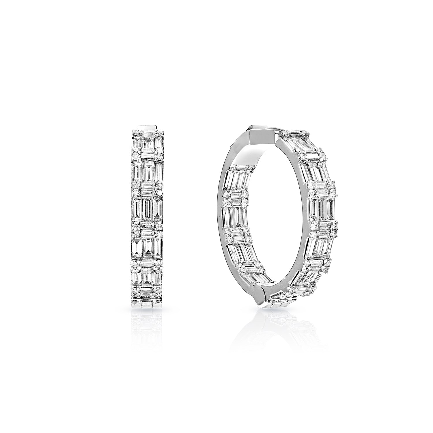 Hailey 5 Carat Combine Mixed Shape Diamond Hoop Earrings for Ladies in 18k White Gold