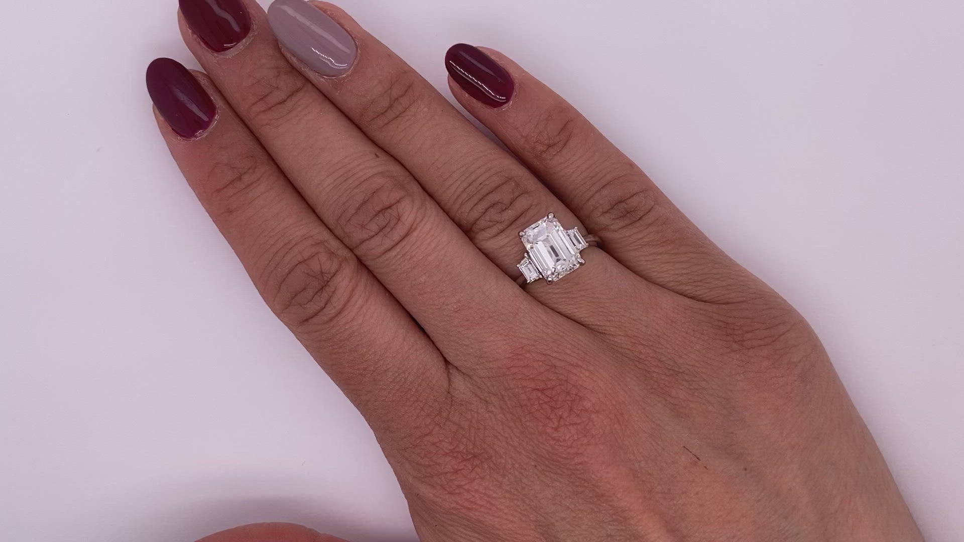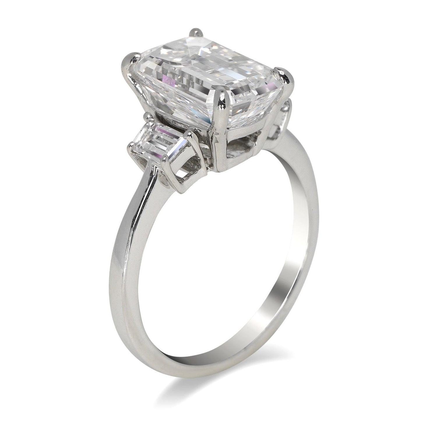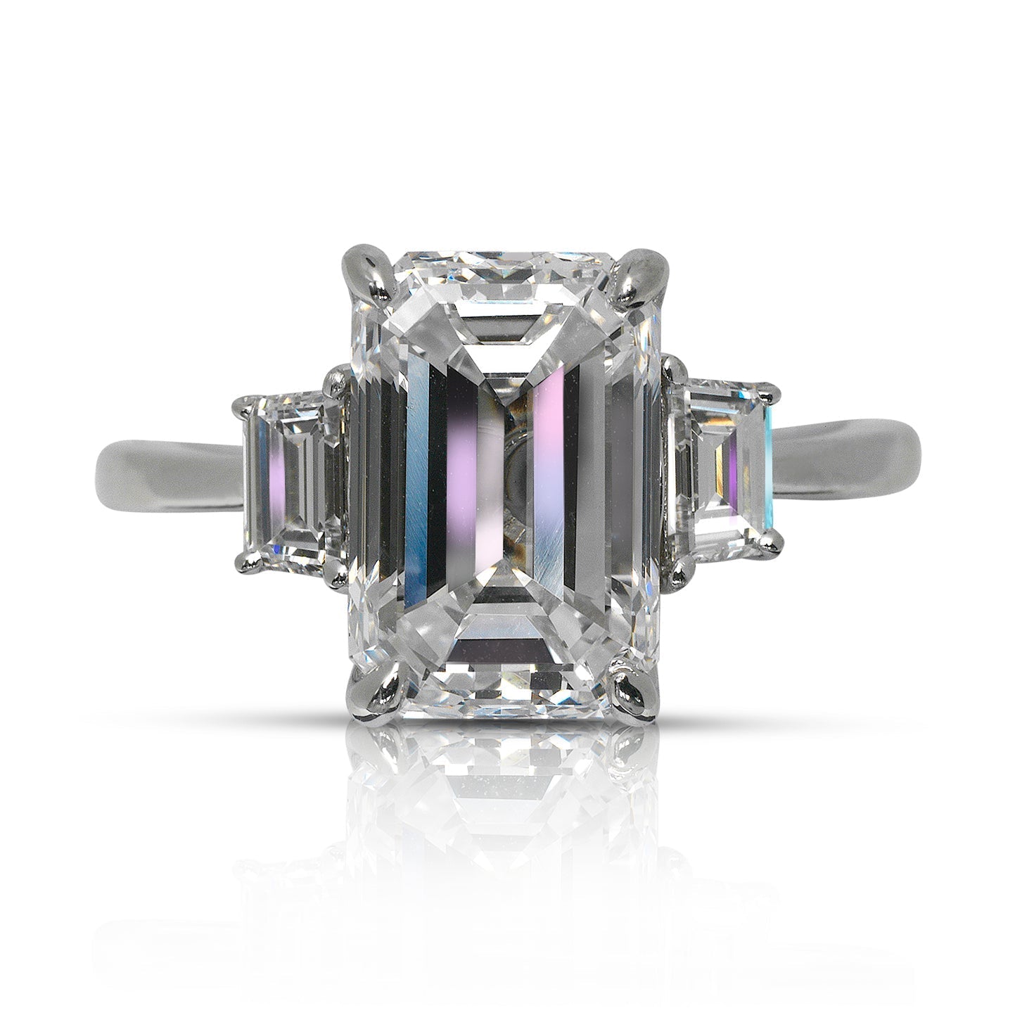 Style: THREE STONE TRAPEZOID EMERALD CUT DIAMOND 4 PRONG SET