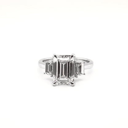 LADY 3 Carat Emerald Cut Lab Grown Diamond Engagement Ring Three Stone IGI Certified