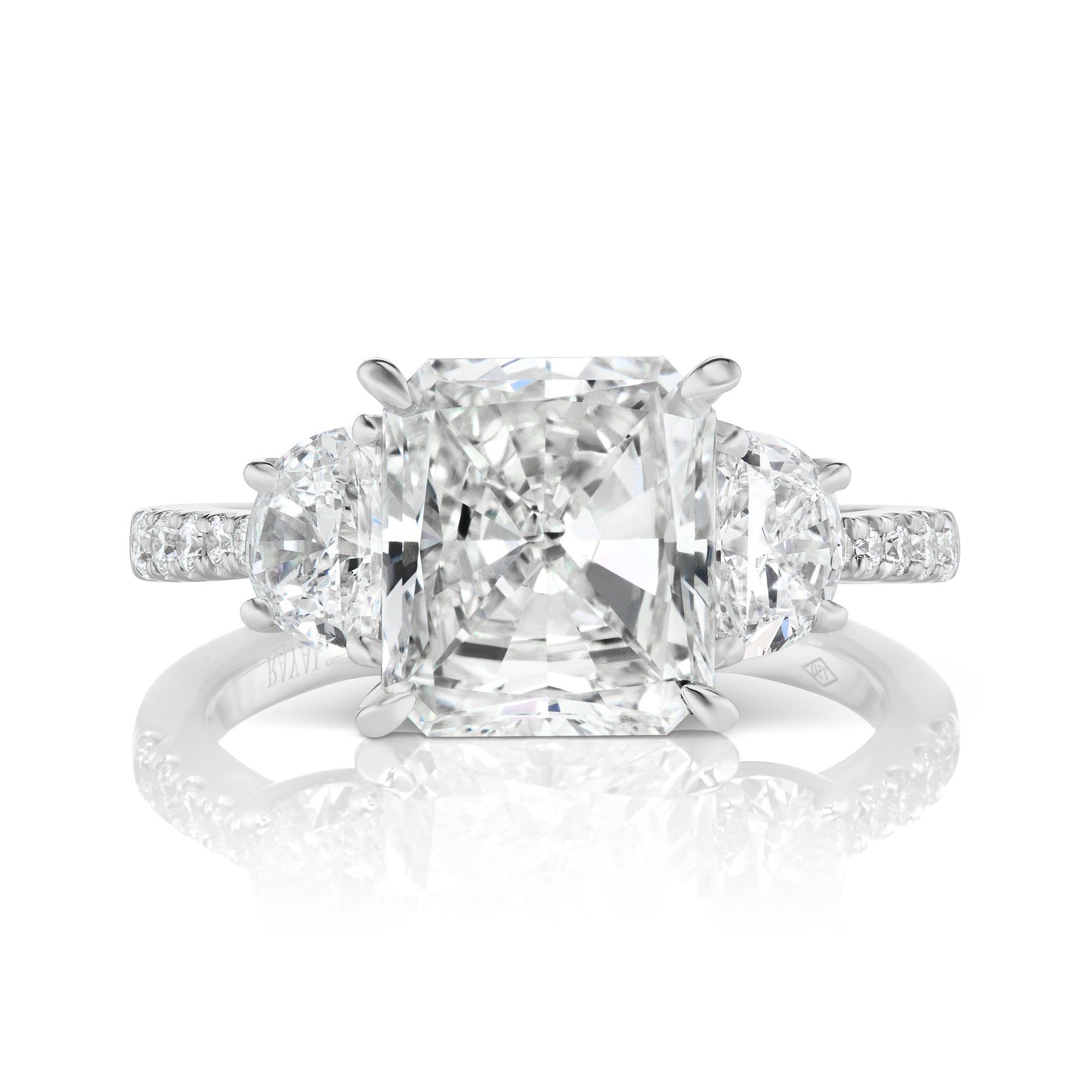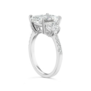 Style: THREE STONE TRAPEZOID RING WITH HALF BAND SIDESTONES