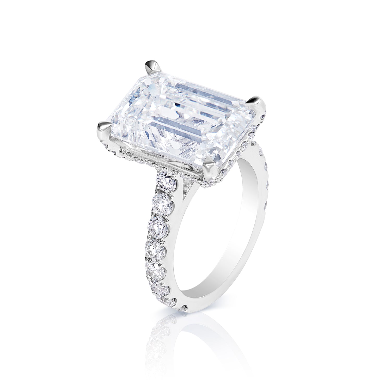 Lark 13 Carat Emerald Cut Lab Grown Diamond Engagement Ring, in 18k White Gold IGI Certified.