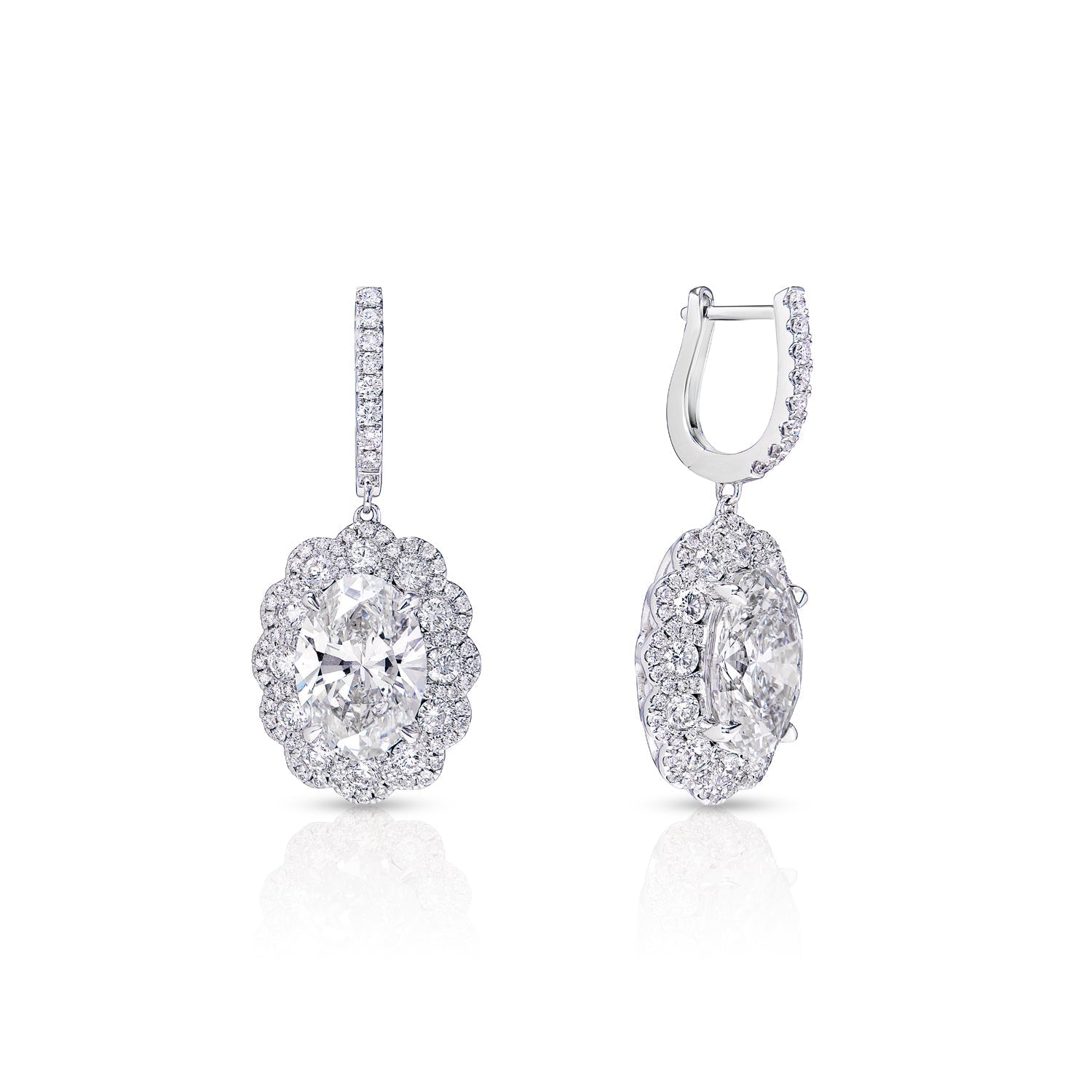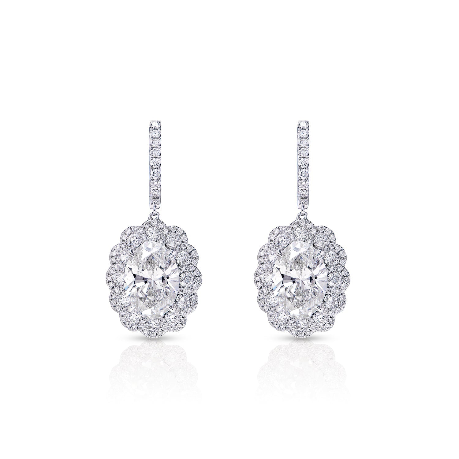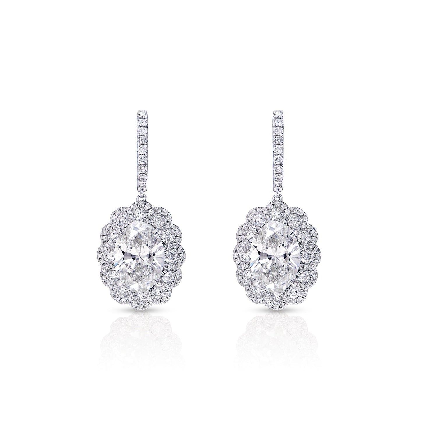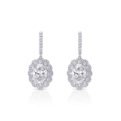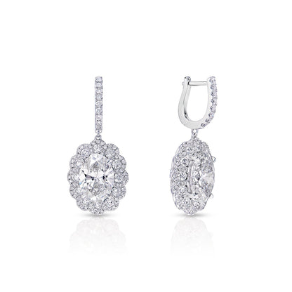 Luanna 11 Carat I VS1 Oval Cut Lab-Grown Halo Diamond Hanging Earrings in 18k White Gold