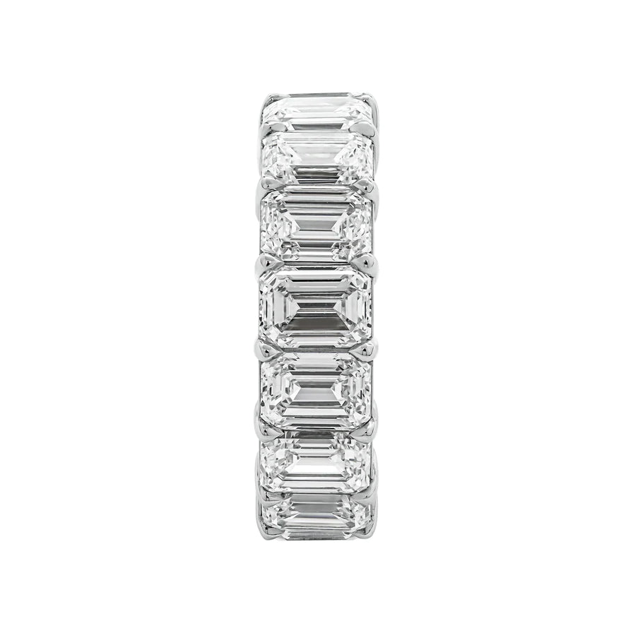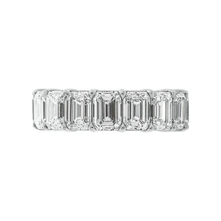 The LUISA Wedding Anniversary eternity band features 16 Emerald Cut 70 pointer diamonds weighing a total of approximately 11.23 carats, Shared Prong set in Platinum.