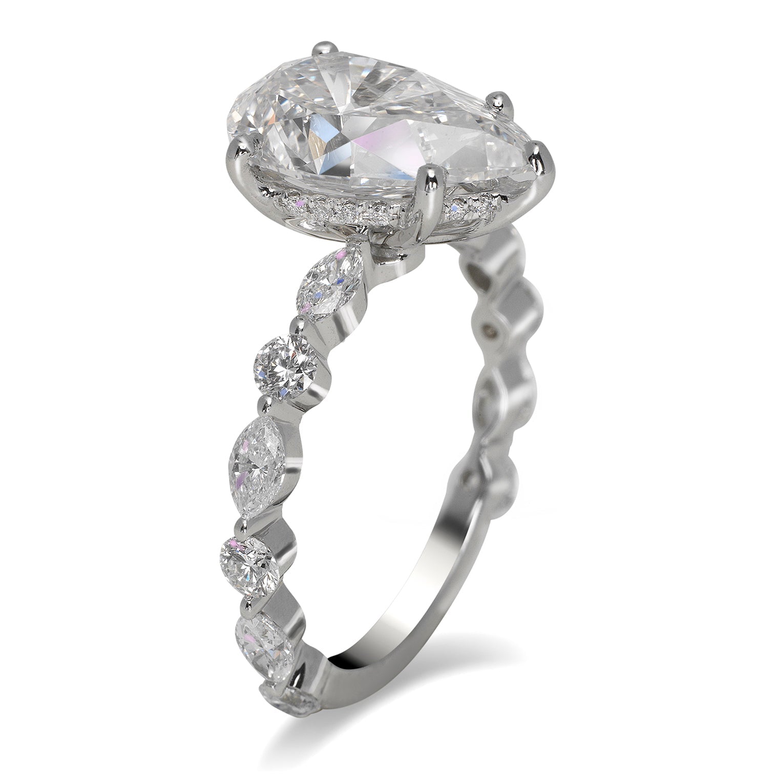 POIRE -PEAR SHAPE DIAMOND ENGAGEMENT RING - FLOATING MARQUEE ETERNITY B AND BY MIKE NEKTA