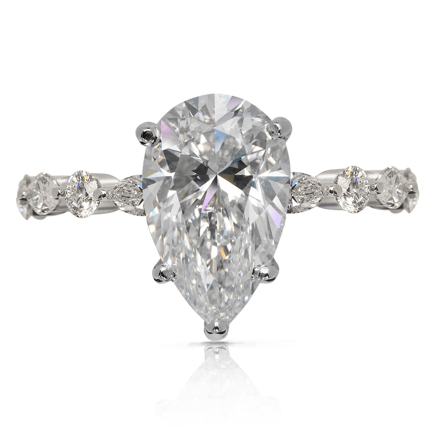 POIRE 4 CARAT PEAR SHAPE F COLOR VVS2 CLARITY DIAMOND ENGAGEMENT RING 18K WHITE GOLD GIA CERTIFIED 3 CT F VVS2 BY MIKE NEKTA
