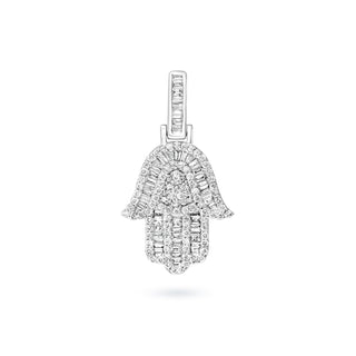 Raquel 1 Carat Combine Mixed Shape Diamond HAMSA Pendant Necklace in 14 Karat White and Yellow Gold
