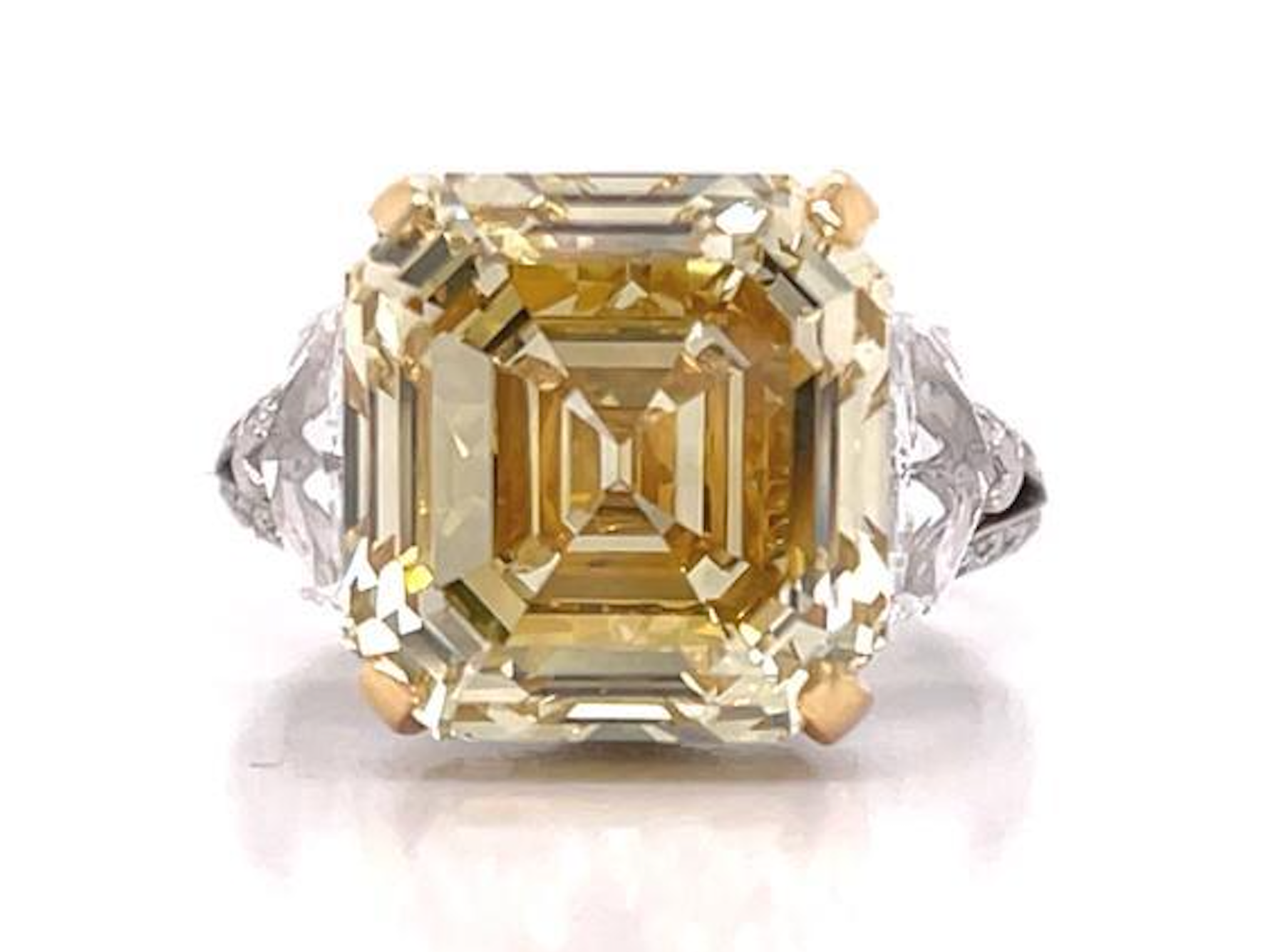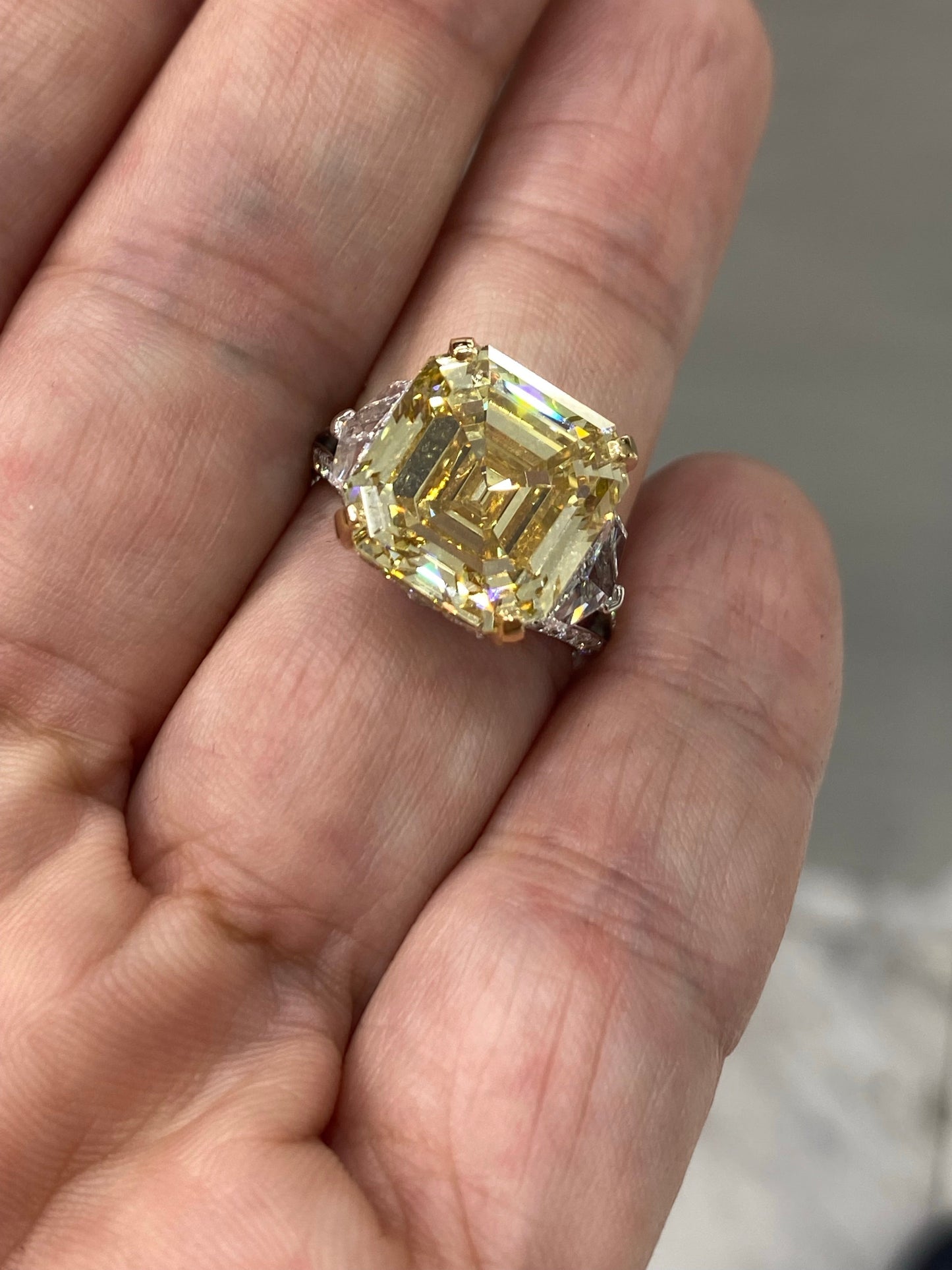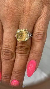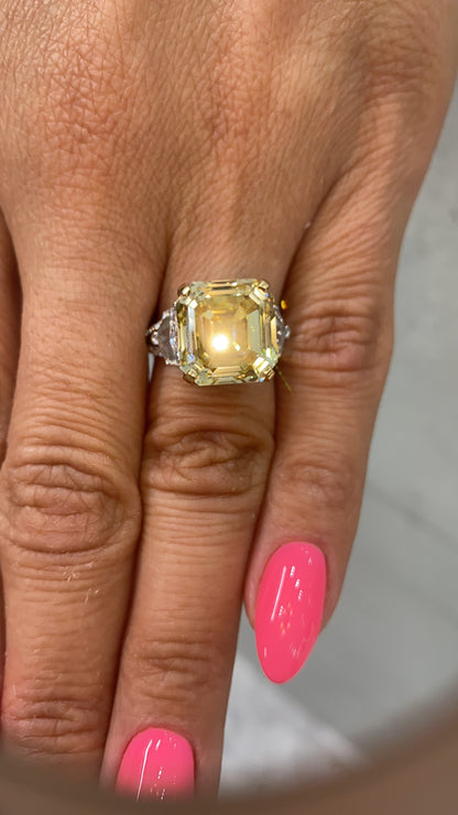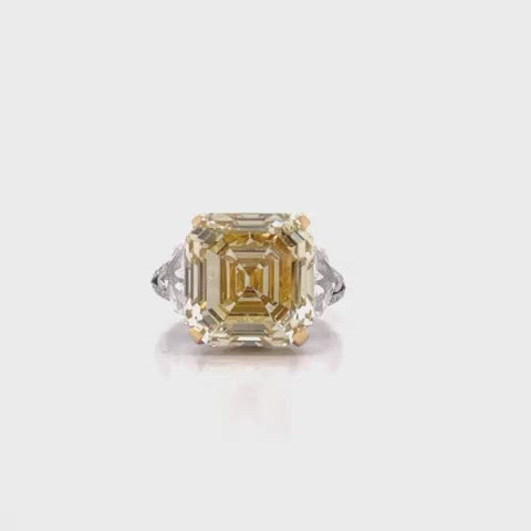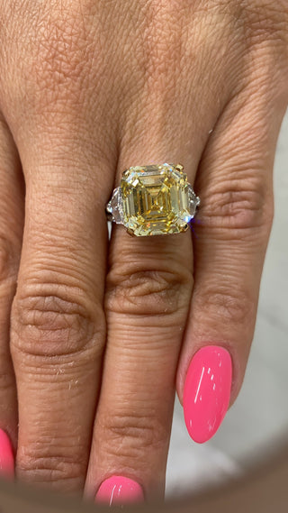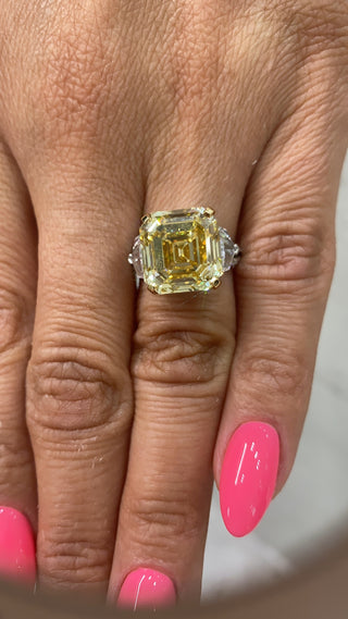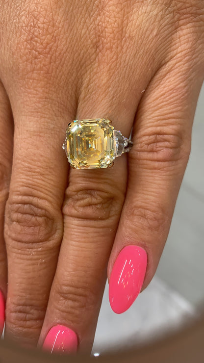 RAYO 11 CARAT ASSCHER CUT NATURAL FANCY YELLOW DIAMOND ENGAGEMENT RING 18K GOLD GIA CERTIFIED 10 CT FBY VVS2 BY MIKE NEKTA
