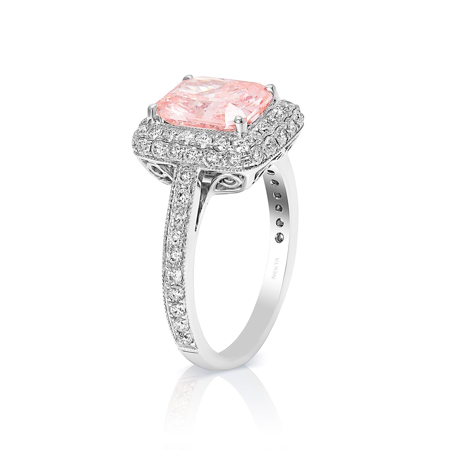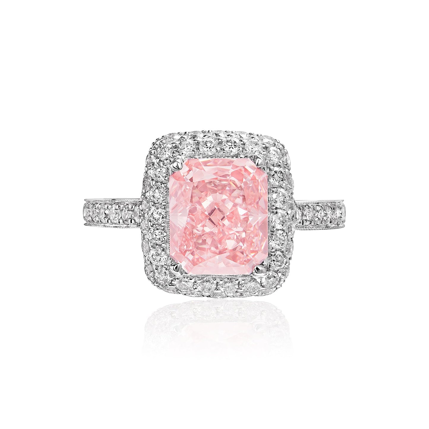 Rebecca 4 Carat Fancy Vivid Pink VVS1 Radiant Cut Diamond Engagement Ring in 18k White Gold By Mike Nekta with GIA