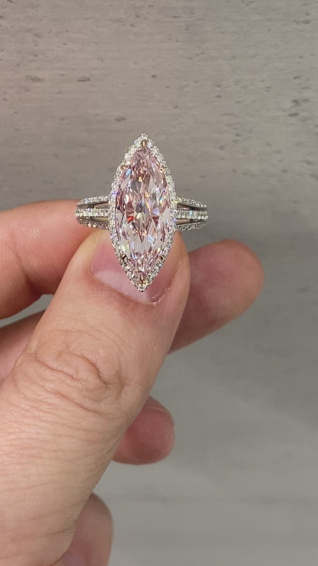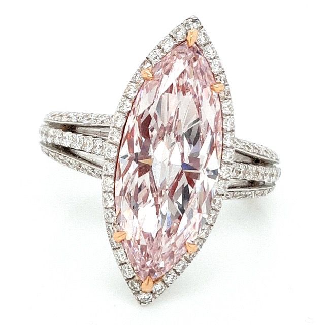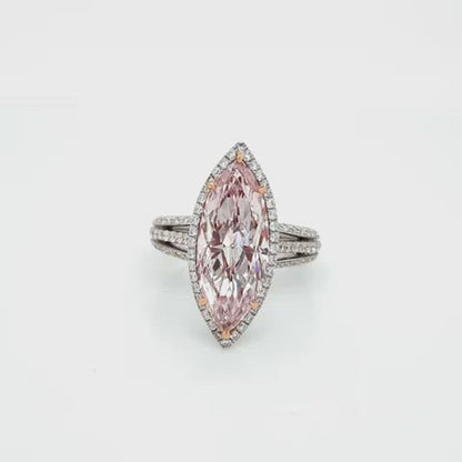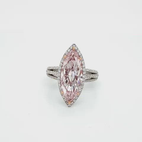 REGINA 5 Carat Marquise Cut Fancy Pink Halo Diamond Engagement Ring GIA Certified 4 CT VS2 FLP by Mike Nekta NYC